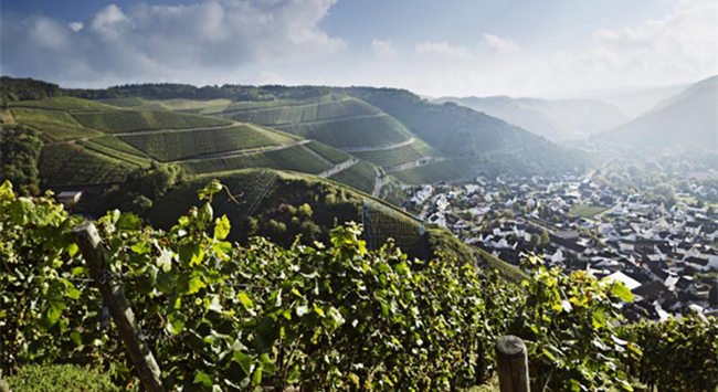 阿爾產(chǎn)區(qū)在德國的眾多產(chǎn)區(qū)中位置比較靠北,面積較小。該產(chǎn)區(qū)的葡萄園分布在阿爾河(Ahr River)沿岸,地勢比較陡峭。黑皮諾(Pinot Noir)是阿爾產(chǎn)區(qū)種植面積最廣的葡萄品種,在當?shù)乇环Q為“Spatburgunder”。