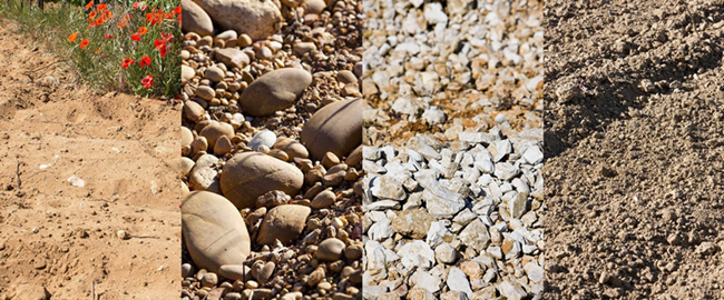 羅納河谷葡萄園坐落于中央高原(Massif Central)與阿爾卑斯山(Alps)之間,北邊被中央高原古老的噴發(fā)巖所覆蓋,南邊是中生代(侏羅紀(jì)和白堊紀(jì))的海洋沉積土壤,以石灰?guī)r為主。第三紀(jì)末(約2400萬(wàn)年至700萬(wàn)年前),阿爾卑斯山的形成,使得河谷崩裂,將高原分成兩半。地中海的海水涌進(jìn)來(lái),用巖屑填滿了河谷。從第四紀(jì)開始,河谷的坡面形成了很多沖積和崩積而來(lái)的階地。如今,羅納河谷葡萄園的風(fēng)土主要由四種巖石構(gòu)成:花崗巖、沙土、石灰?guī)r和黏土。這些母巖對(duì)葡萄樹根部保持適宜的水分起到了關(guān)鍵作用,為這里的葡萄酒帶來(lái)結(jié)構(gòu)與芳香。