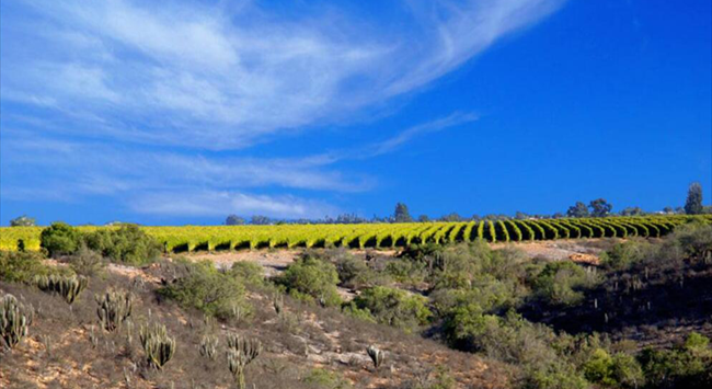 明朗如鏡的天空,映襯著連綿起伏的山丘,偶爾可見仙人掌、山楂樹和其它一些低矮的灌木叢,而在山谷之地,卻分布著成片的葡萄園,綠色的葡萄葉、黃色的土地與藍(lán)色的天空交相輝映,這就是阿塔卡馬沙漠(Atacama Desert)南部的風(fēng)光,著名的利馬里谷(Limari Valley...