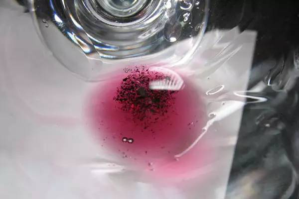 紅葡萄酒中,鐵離子與單寧結合形成很薄的紅色膜,漸漸變成藍色沉淀,但被葡萄酒顏色所掩蓋,從而表現出黑色。在白葡萄酒中,鐵離子與單寧結合,形成鉛藍色沉淀,酒的顏色也變黑。鐵離子與磷酸鹽結合的沉淀,呈現白色,在低溫下容易產生,這種沉淀是可逆的,置于陽光下,渾濁沉淀消失,主要發生在白葡萄酒中。