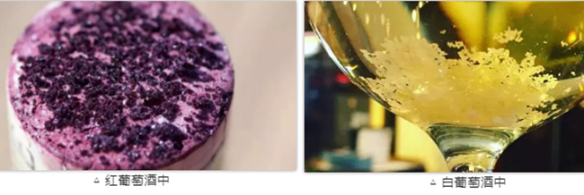 在紅葡萄酒中,酒渣一般呈現(xiàn)為紫紅色的結(jié)晶體或沉淀,而在白葡萄酒中則會呈現(xiàn)為半透明的晶狀碎渣。