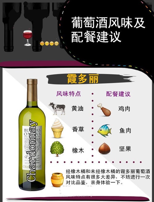 東莞藍(lán)菲城堡葡萄酒代理商用6張圖片列出最主要的6種葡萄酒,并簡(jiǎn)要說明相應(yīng)的風(fēng)格特點(diǎn)和配餐建議。比如稱得上“千面女郎”的霞多麗葡萄酒,即可以清新脆爽,也可以豐滿順滑,而決定其風(fēng)格的,除品種本身外,還有釀酒工藝,尤其是橡木桶的使用。【