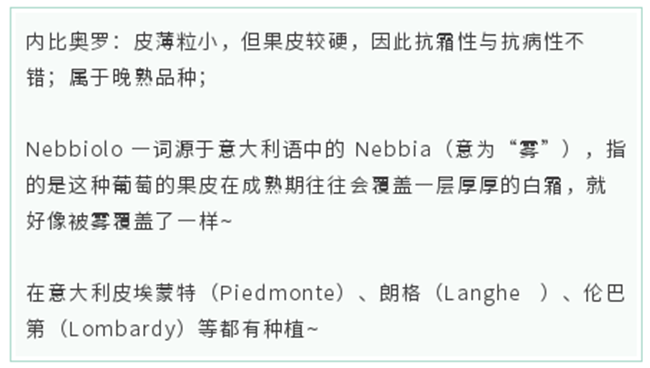 沒有內比奧羅,可能就不會有意大利酒王之王和酒后了,因為巴羅洛(Barolo)和巴巴萊斯科(Barbaresco)葡萄酒,都是由100%內比奧羅葡萄釀制而成的!