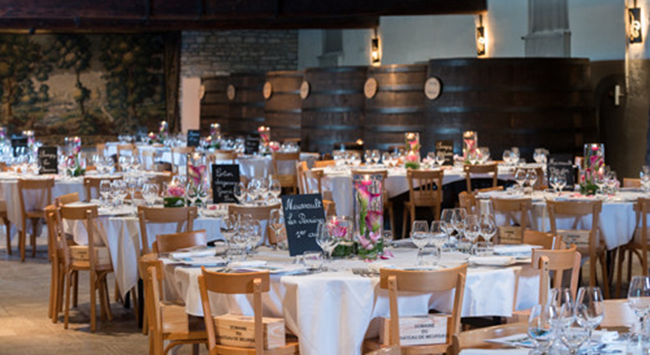 在上世紀(jì)30年代早期,勃艮第葡萄酒的極佳年份雖接續(xù)不斷,如1929、1933和1934年等,但在供過于求的市場(chǎng)環(huán)境下,葡萄酒庫(kù)存大量積壓,資金回流受阻,酒農(nóng)面臨巨大的經(jīng)濟(jì)壓力。1933年,兩位來(lái)自夜圣喬治(Nuits-Saint-Georges)的有志之士卡米耶·霍迪爾(Camille Rodier)和喬治·法維萊(Georges Faiveley)成立了一間旅行社,致力于推廣勃艮第的葡萄酒。為讓更多人關(guān)注勃艮第葡萄酒,他們做出了一個(gè)大膽的舉動(dòng):在牛頓酒窖(Le Caveau Nuiton)舉行晚宴,邀請(qǐng)各方人士來(lái)參加葡萄酒的品鑒。這便是“榮耀三日”的周六伏舊園城堡晚宴的前身。
