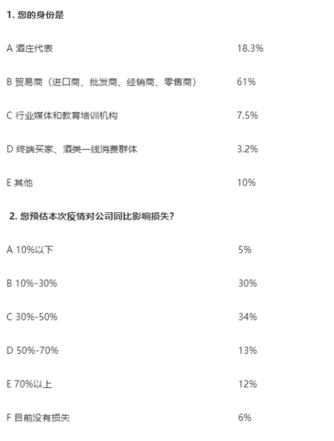 葡萄酒產(chǎn)業(yè)鏈長,上下游關(guān)系復(fù)雜。在當(dāng)前疫情下,對葡萄酒行業(yè)不同層面的影響各有不同。但疫情不會改變中國葡萄酒行業(yè)的快速向前發(fā)展,疫情會對2020年的中國葡萄酒行業(yè)造成影響,影響有多大?如何影響?TopWine China根據(jù)上周發(fā)布的調(diào)查報告來逐一分析: