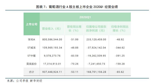 新冠肺炎疫情對于本就脆弱的葡萄酒行業(yè)來講,無疑是一記重錘。2020年第一季度,四家葡萄酒企業(yè)總營收9.37億元,同比降低53.11%;實現(xiàn)歸母凈利1.69億元,同比降低65.62%。只有張裕一家歸母凈利維持正值,其余皆為虧損。業(yè)內(nèi)人士曾表示“葡萄酒行業(yè)'短期不樂觀',2020年將是國內(nèi)葡萄酒市場近十年來最艱難的一年。”