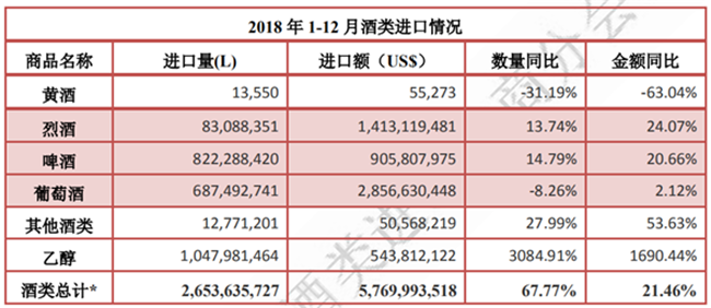 • 2018 年 1-12 月酒類進口統計分析