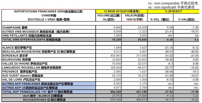 根據(jù)WBO發(fā)布的2018年法國(guó)各產(chǎn)區(qū)葡萄酒進(jìn)出口中國(guó)大陸地區(qū)的數(shù)據(jù)顯示,去年幾乎大部分產(chǎn)區(qū)出口中國(guó)的量額出現(xiàn)下跌。
