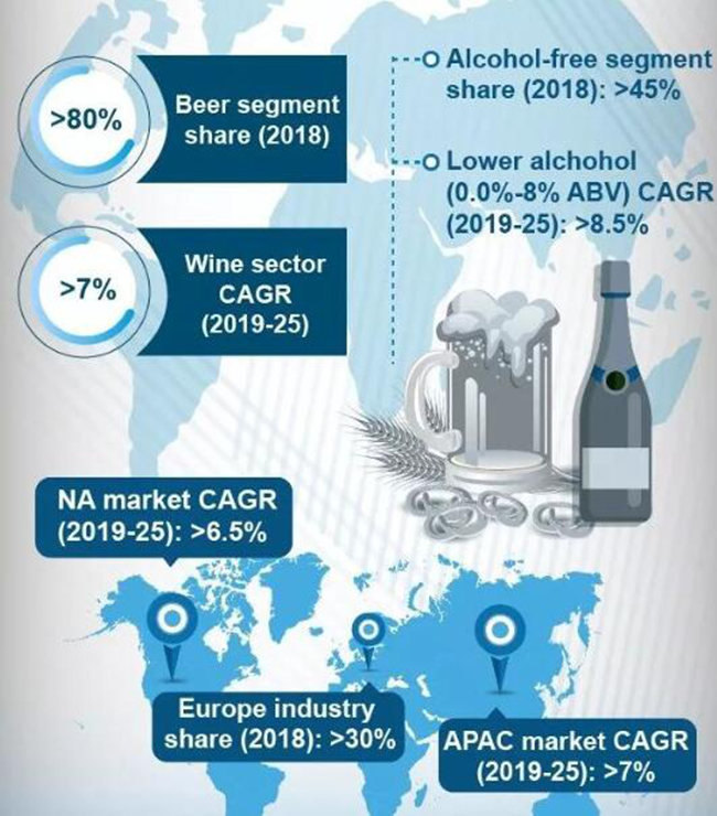 • 到了2025年,無醇葡萄酒和啤酒市場規模將達到300億美元