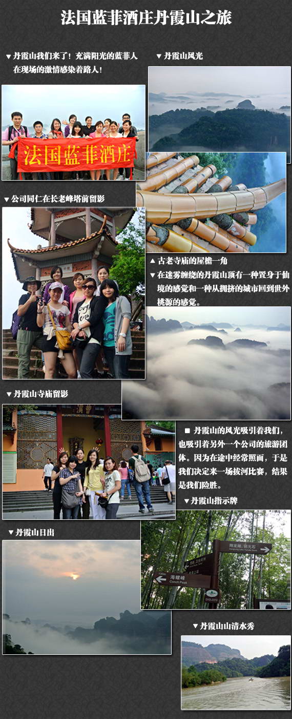 丹霞山我們來(lái)了!法國(guó)藍(lán)菲酒莊紅酒招商部、財(cái)務(wù)部、市場(chǎng)部、網(wǎng)絡(luò)部等諸多藍(lán)菲人在現(xiàn)場(chǎng)的激情感染著路人!